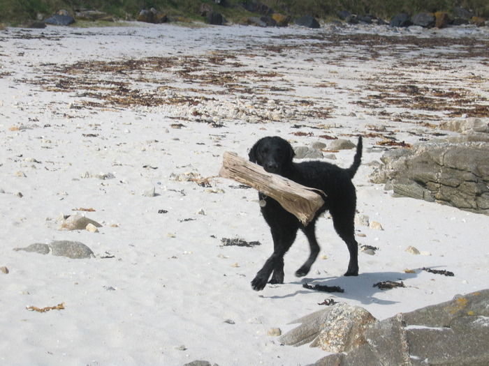 Do you see Oscar with me? He is all back and photoing black dogs is a huge challenge. He is a Curly Coated Retriever. I have had many, different breeds and now I would have nothing but this. I got Oscar when Skye died a little over two years ago. There is a picture of Skye there too. I love Oscar and books, OK - my husband too! Oscar, he loves swimming and running and carrying sticks or rather huge logs!