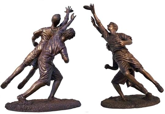 A recent commission—so thanksgiving is over and the father has given this to his son as a gift. I can't wait to hear what he thinks. The son was on the ultimate frisbee team at the University of Texas- he is depicted as the one catching the frisbee. This piece is about 20" high.