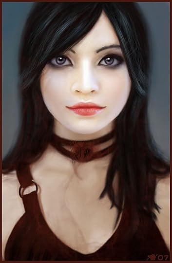 Look: Dark brown hair about medium length, she is short and thin. She has black wings with white tips.