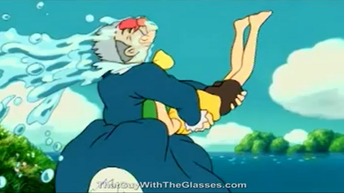 After the storm when they see the cranky old lady