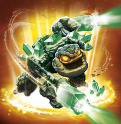 Prism Break was once a fearsome rock golem who didn't like to be disturbed. Then, an accidental cave-in left him buried underground. One hundred years later, a mining expedition digging for valuable jewels discovered him by chance with a well-placed blow from a pick axe -- something Prism Break doesn't talk about. After 100 years of solitude, he found that the pressure of the earth had transformed him emotionally as well as physically, turning his crude rocky arms into incredible gems with powerful energy. Grateful for being free of his earthly prison, Prism Break decided to put his new abilities to good use, and from that day forward, he dedicated himself to protecting the Mabu and Skylands alongside the other Skylanders.