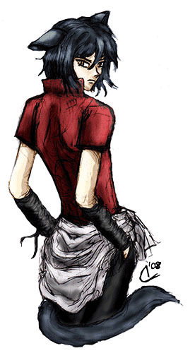*Looks: Mike has Black hair and deep, nearly black eyes. His hair is down to his shoulders and he has small, cat like ears connected to his head. His tail is not so long, as most others are, but his makes up for the lack in length with it's fur. His eyes change to red when he becomes angry or nervous somehow, they nearly glow sometimes. He is tall, lean and muscular from all of the jobs that he has done to get all the information that he does.