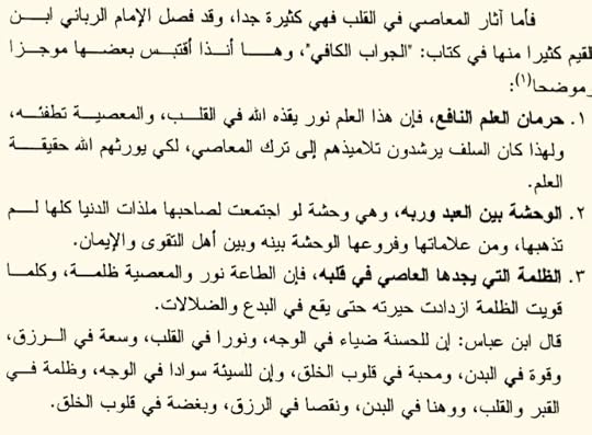 وكذلك في جانب الصلاح. فإذا خربت العين وفسدت، خرب القلب وفسد، وصار كالمزبلة التي هي محل النجاسات والقاذورات والأوساخ. فلا يصلح لسكنى معرفة الله ومحبته والإنابة إليه والأنس به والسرور بقربه فيه. وإنما يسكن فيه أضداد ذلك. فهذه إشارة إلى بعض فوائد غض البصر، تطلعك على ما وراءها.