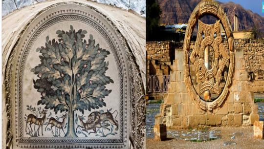 من اليمين إلى اليسار - نجمة قصر هشام وفسيفساء الحياة في القصر