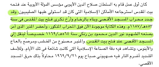 صورة للمنبر الذي أمر نور الدين بصنعه قبل حرقه