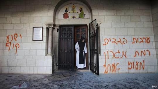 عبارات عنصرية كتبها مستوطنون على مدخل الدير