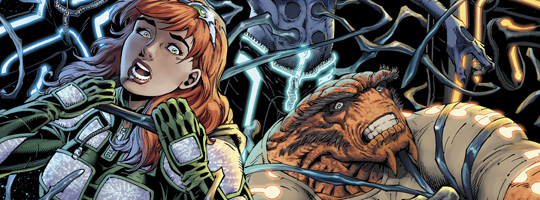 (2) DC bought Wildstorm, and its main lady hero is Caitlin Fairchild. All I know about her is she muscles up like the Hulk, causing her clothes to rip off, causing her to always fight in her underwear... that's the '90s for ya.
