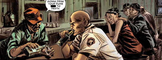 (1) This kicks off with a two-parter, drawn by Davide Furnò, about how Dashiell and Carol use each other to cope and forget about their crappy lives, and in so doing spiral into vice and self-destruction.