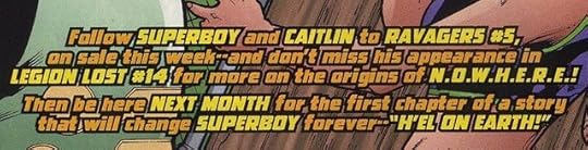 (1) Last book I said that I was adding "The Ravagers" to my TBR, thinking it was optional. Well, now I seriously have to read it because not only does this book crossover with "Superman" and "Supergirl," with those issues absent, it also crosses over with "The Ravagers" with those issues absent. So, I need to read that to figure out WTF just happened! Man, seriously?