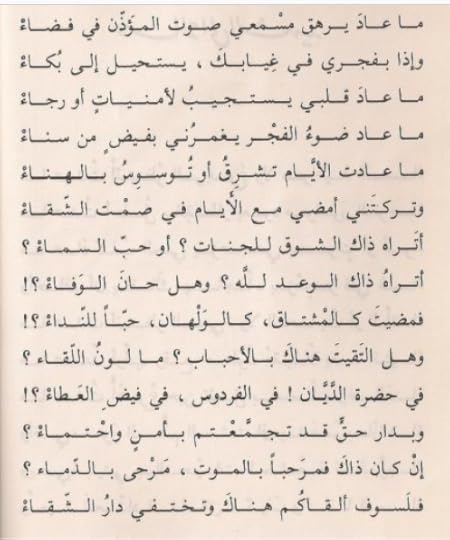 وعزائي أن الحياة ستمضي..وسألقاه في غد بعد حين/ الحياة مضت يا أمينة.. ونسأل الله أن تكوني معه الآن في جنة ونعيم..