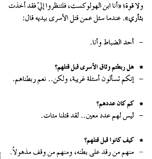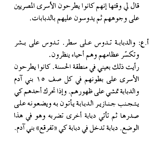 "بدك ميه؟ فاذا رد الأسير "نعم" يقولون له "تعال" يأخذونه ويفرغون في رأسه ثلاث طلقات، يموت في الحال .. مع السلامه"