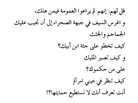 بأي وجه تقابل اليوم هذه الأرض؟ بوجه الرابع من يونيه/حزيران وكلك أنفة؟ أم بوجه الخامس من يونيه/حزيران، وكلك انكسار؟ أم ترى تقابلها اليوم بوجه اليوم، وأنت لا تدري اليوم إلى أين أنت ذاهب؟