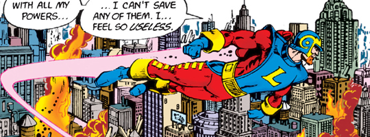 (1) Boy, how good was George Perez! That first part with the worlds being consumed by antimatter is really great stuff.