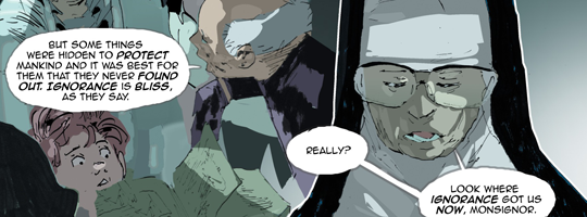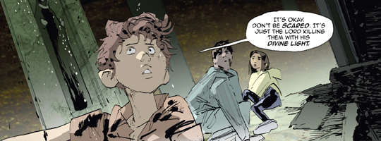(1) The second issue is just a lot of regrouping and info-dumping, which doesn't do the art any favors.