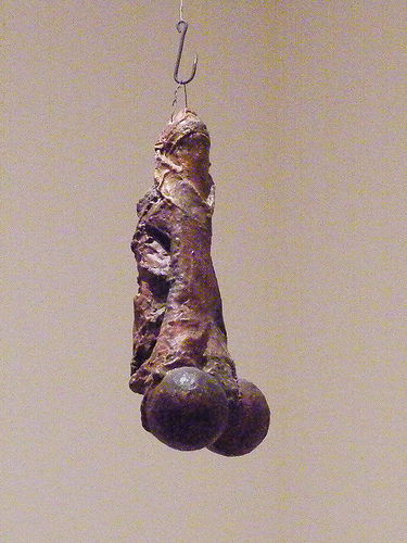 Louise Bourgeoise, Fillette, 1968. ‘The artist intended to express in this work her affection for male fragility. It is difficult, however, not to discern a certain misandry in the castrated, skinned, suspended phallus…’ Well. I don't know.