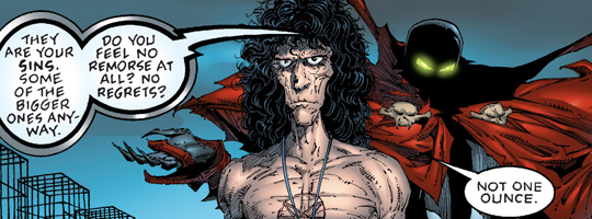 (2) I guess Spawn's a freelance vigilante now, specializing in child abuse cases.