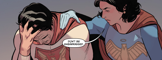 (1) The final two issues continue the philosophical bent this series has taken. Here it's a look into how human superhumans are, and how that affects those around them.