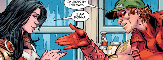 (1) Roy introduces himself to Donna, just like Tim did with Stephanie in "Batman: Eternal."
