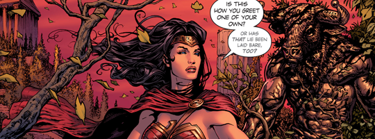 (1) This was both interesting and not interesting. It's a very meta story about Wonder Woman having an existential crisis about which of her origin stories and life events are canon and which are lies.