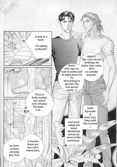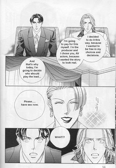 *Snort laugh* Oh I wish I could be the one to say that to them. :3 This is a total 'hands on' audition if you get my drift. Smexy and dubcon borderlines noncon. The scene where both were trying to dominate each other to avoid bottoming was hot and funny.
