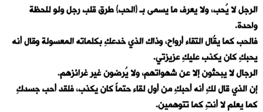 " ليس للعلاقات قواعد ، ولا للحب نهاية ، ولا لحياتك شخص تقف من بعده ، ولن ينتهي المطاف إلا حيث يريد الله لنا ، وما الحياة إلا محطات ، كوني كما تحبين أن تكوني ، لا تحبي كثيراً ، ولا تكرهي على الإطلاق "