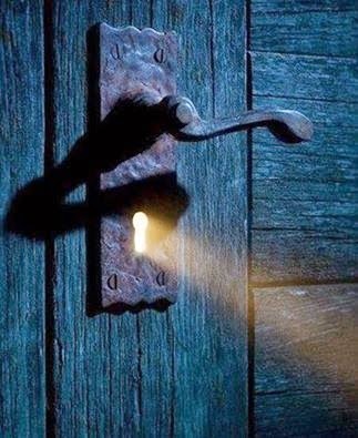 "I have to open this door. I have to go through . I don’t know why, but I am compelled. I must . My hand rises. My sweaty, trembling palm meets cool metal. My heartbeat pulses so fast I can barely breath . I turn the knob. I push the door open..."