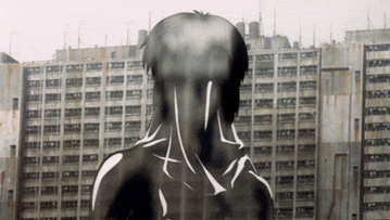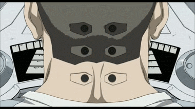 "Be my guest." The researcher extends and offers a wired jack, at which Togusa throws up his arms in surrender as if it's the barrel of a gun. "I'm sure you people know what opening a port means in this day and age," the researcher says.