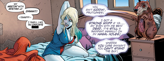 (2) I do appreciate the continuity of Harley's head still being partly shaved.
