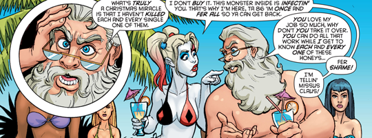 (2) I can understand not wanting to end this book on a total downer, but moving the very chipper and madcap Christmas issue to directly follow such a bleak story arc isn't just bad continuity, it's too drastic a tonal shift.