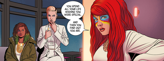 - The art, specifically, being so clean and not-excessively rendered, reminds me a lot of "Y: The Last Man" and "Paper Girls." Quite modern-throwback, if that makes sense.