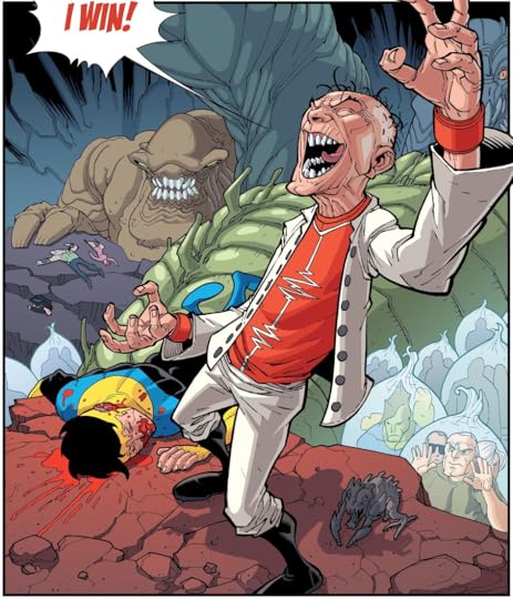 Invincible is normally pretty good about making the characters seem like real people, and their disagreements like everyone had a point and you could pick whichever side you like and make it make sense... but this one I really didn't like. On one hand, Mark was way overreacting: he seems to have not heard of things like parole or community service. On the other hand, Cecil was the one to choose violence.
