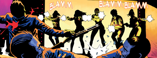 (1) I don't know how much time's passed between this and the previous book—judging by the coma subplot, not much—yet a group of cartel-trafficked women are suddenly a deadly team of crack-shot badasses?
