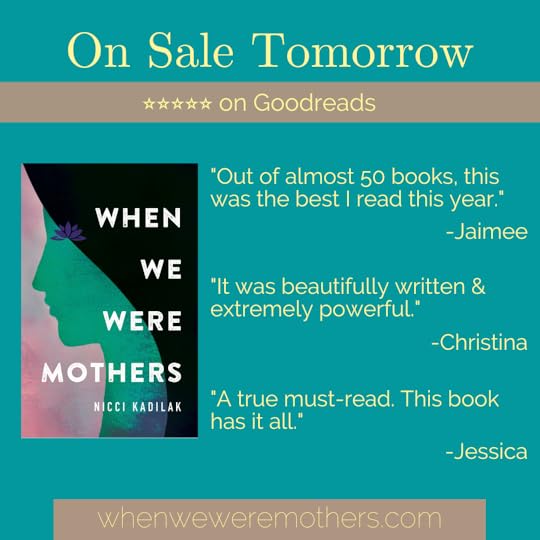 Thank you so much to everyone who has made the launch of When We Were Mothers amazing! I hope you continue buying, reviewing, and sharing this book, which currently has 5 stars on both Amazon and Goodreads! Also, it's 99₵ until tomorrow!