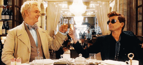 No podemos negarlo. Parte por lo cual me está agradando el libro, a pesar de sus bajas en ritmo, es por la serie. Imaginarme a David Tennant y a Michael Sheen hace toda la diferencia; aún así, tengo una queja: