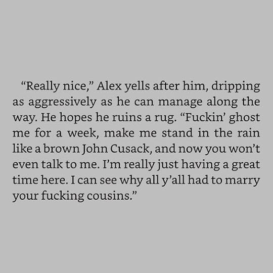 okay so i am honestly ashamed of how long it took me to read this one. i restarted the book this morning, and im already 70% in. i swear it was the best decision i ever made bc yall the writing is just