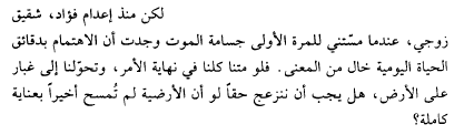 القراء في هذا الكتاب أثارت الكثير من الشجن. ذكرني، من بين ما ذكّرني، الكتاب بأغنية أنغام وذكرى (نحلم ايه) اللي غنّنها مع اندلاع الانتفاضة الثانية (لكن الفيديو الكليب الخاص فيها بيحكي عن النكبة ومجازرها). من سنين ما سمعتها.. الأغنية حلوة: