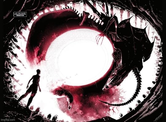 Then a man stepped out of the icy blue light. His skin was dead white and his eyes were two wounds; his eyelids and lips were wrenched back by hooks. He wore a black robe, like some kind of monk, as the light swirled around him like mist.