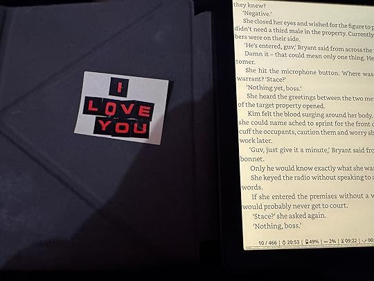 Yesterday, I sat in my wife's study, reading peacefully on my Kobo while she was puttering around with some office stuff.