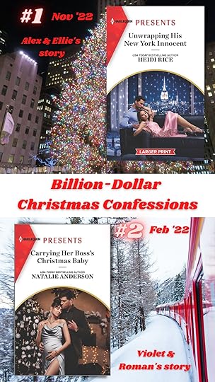 A graphic of my new Harlequin Presents Christmas duo with Natalie Anderson, so no one reads the stories in the wrong order!