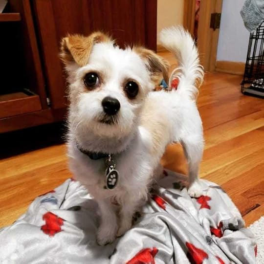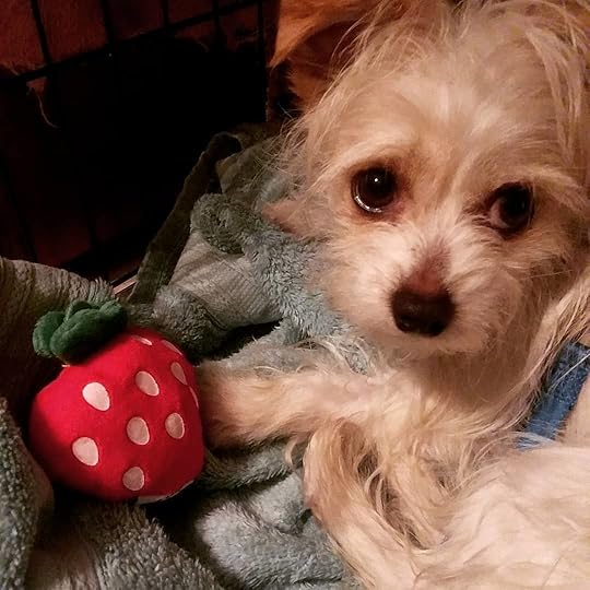He's a 7-pound poodle-cairn. He loves cuddles, pets & (above all) his little strawberry buddy!