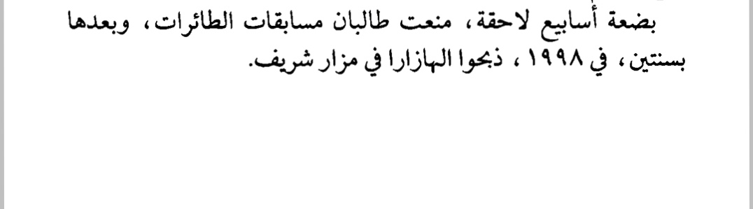 بضعة اسابيع لاحقة، منعت طالبان مسابقات الطائرات ،و بعدها بسنتين ،في ١٩٩٨، ذبحوا الهازارا في مزار شريف.