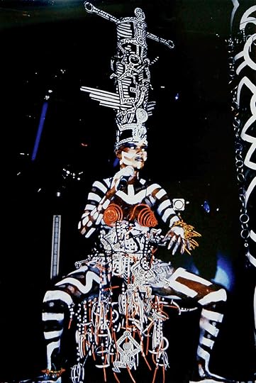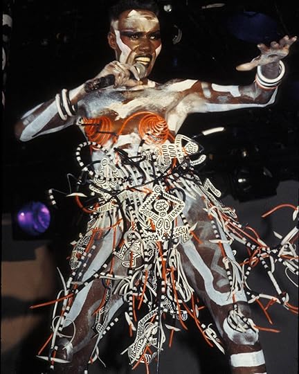 Grace Jones painted by Keith Haring at Paradise Garage in New York City, 1985.