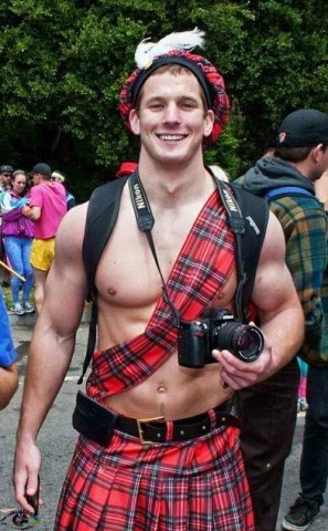"You kidding? I love it. I dream about that kilt. Sheesh! But so does everyone else, and I'm not sharing. Jesus. That guy just checked you out too.! I'm gonna kill.."
