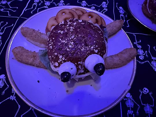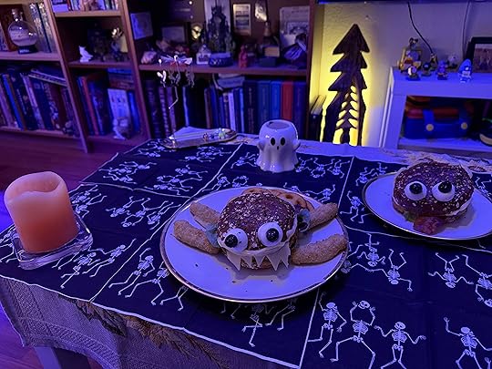 Actually, the haunted house took longer.As for the food, I had also planned to make dessert and stuff (at least three courses and sides) but I don't know who could have eaten it all and I didn't feel like throwing stuff away. Which is also why the monsters (spiders, whatever) only have 4 legs. *lol*