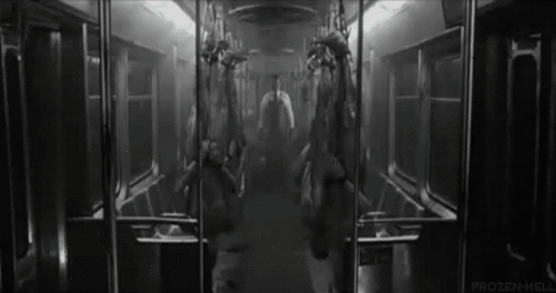 The Midnight Meat Train is viciously fucked. I searched for a scary gif of a train and found an actual one about the Meat Train. Is this from a visual adaptation of said story? Title of the gif from tumblr confirms it. Wanna watch!!