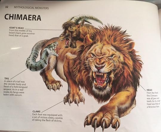 The chimaera had the head and body of a fearsome lion, a scaly tail ending in a dragon's head, and, worst of all, a fire-breathing goat's head on its back.